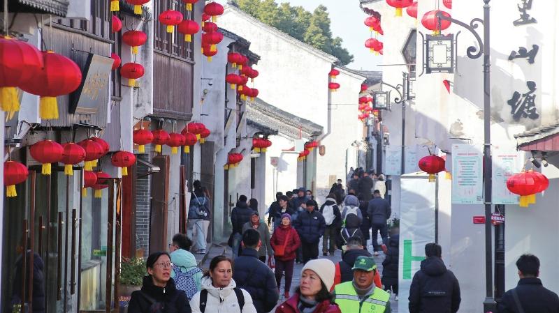 新春佳節臨近,山塘街更換了一批嶄新的喜慶紅燈籠,將古街裝扮得更加靚麗迷人。